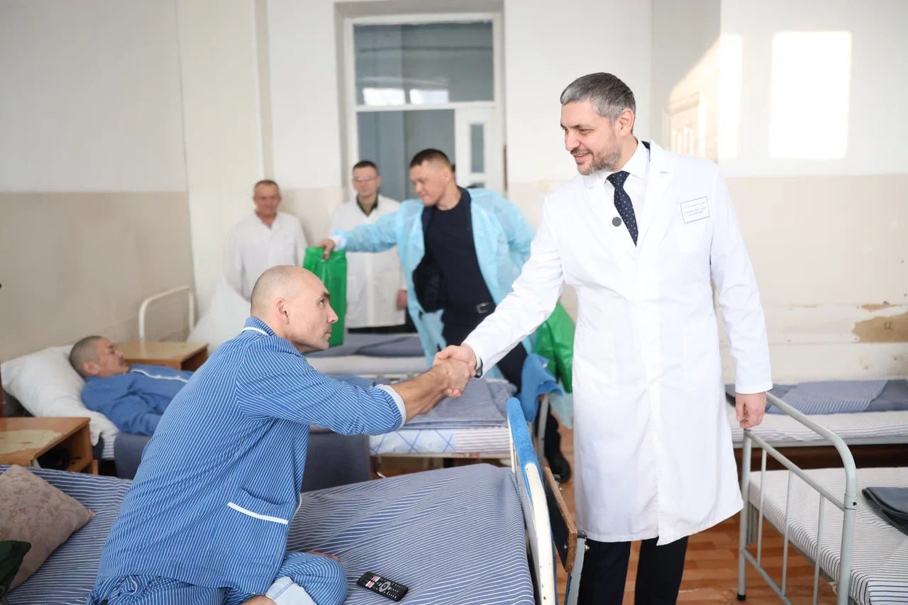 Глава региона вручил подарочные наборы военнослужащим, а также пообщался с бойцами. Они рассказывали Александру Осипову, откуда родом, и отмечали условия лечения — благодаря персоналу они быстрее идут на поправку.