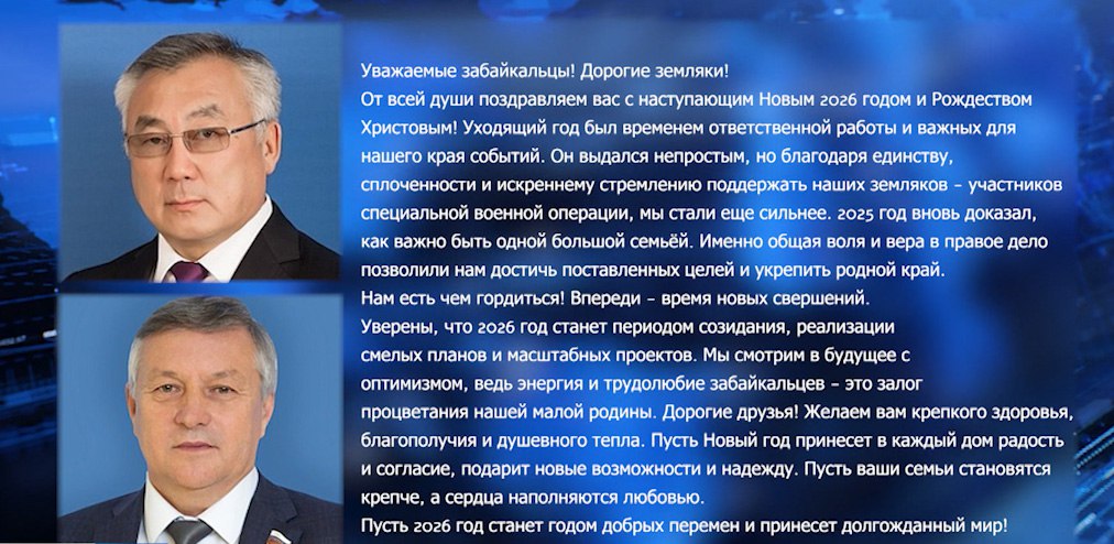 К жителям региона сегодня обращаются сенаторы Российской Федерации от Забайкальского края Баир Жамсуев и Сергей Михайлов.