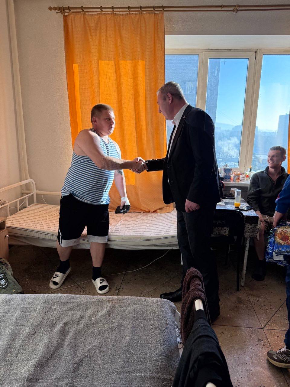 Вместе с руководителями ООО «Информационные технологии» Константином Гривачёвым и Дмитрием Белоусом, старшим тренером сборной России по боксу, заслуженным тренером России Александром Гривачёвым , а также заместителем руководителя Ассоциации ветеранов СВО Забайкальского края Андреем Витюком мы лично поздравили бойцов с наступающим Новым Годом и Рождеством, передали новогодние подарки и, самое главное, слова поддержки, пожелания добра, мира и скорейшего возвращения в строй.
