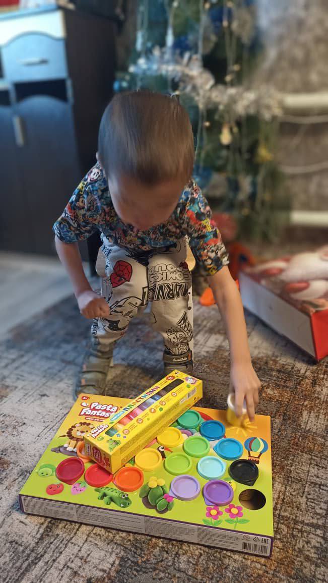 Роман Ситников разгадал ребус, подарив мальчику теплый зимний костюм, пластилин для творчества и сладкие гостинцы.