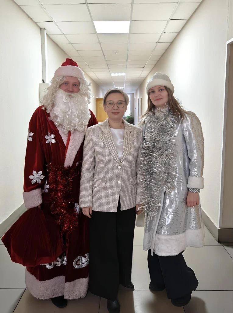 Глава краевого Минсельхоза Альбина Корешкова вместе с Дедом Морозом и Снегурочкой вручили подарок 7-летнему Вове: искусственную ёлочку и набор игрушек для её украшения, а также сладости.