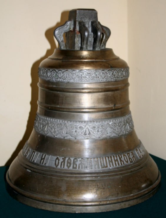 Колокол завода «П.И. Оловянишкикова сыновей» из коллекции Нерчинского краеведческого музея. В нижней части колокола имеется типовая литая надпись: «Лит в заводе П.И. П.И. Оловянишкикова сыновей в Ярославле».