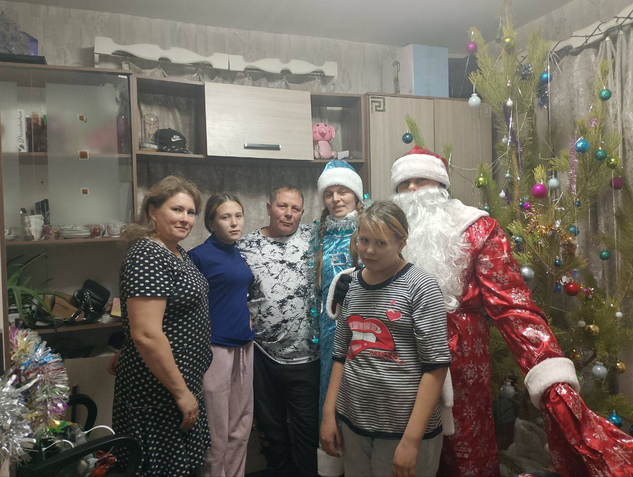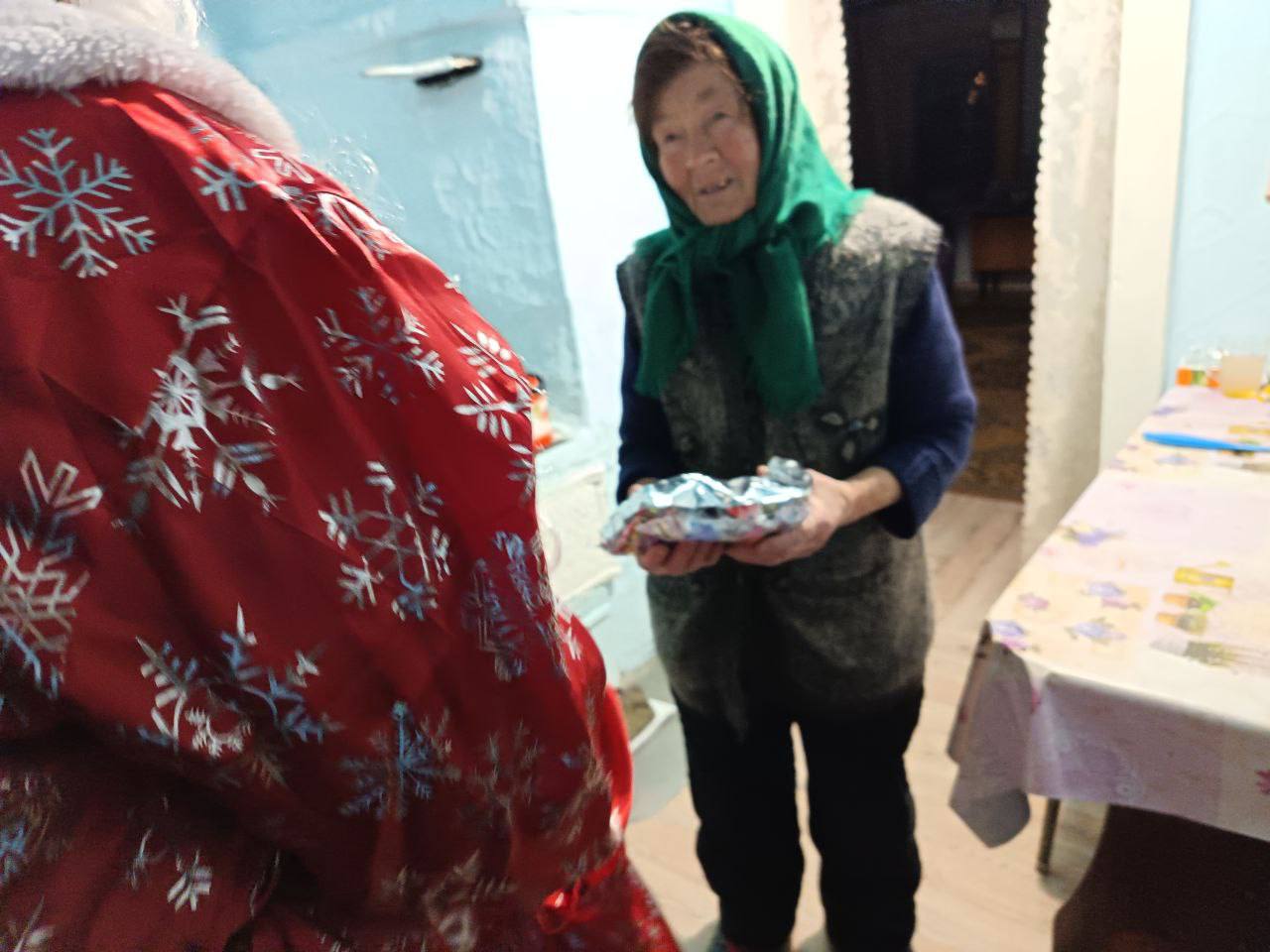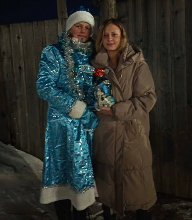 Председатель совета ТОС п.ЧЭС Дмитрий Тюменцев и руководитель волонтерской группы «Новая жизнь» Валерия Седунова, переодевшись в костюмы Деда Мороза и Снегурочки, поздравили на дому пожилых людей категории «дети войны» и активных жителей посёлка. У поселка ЧЭС обширная территория, да и посетить надо было многих, поэтому путешествие дедушки с внучкой было долгим.