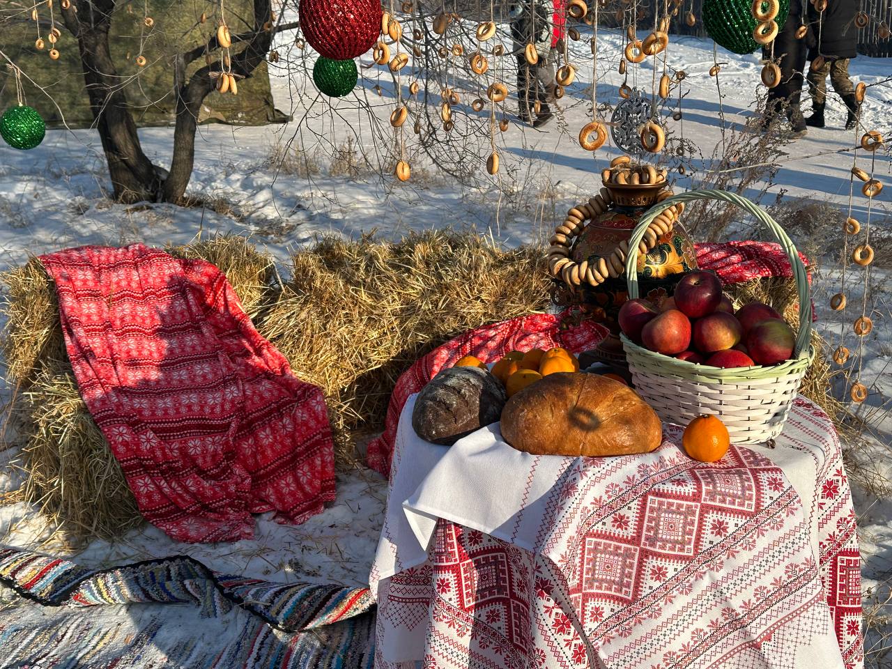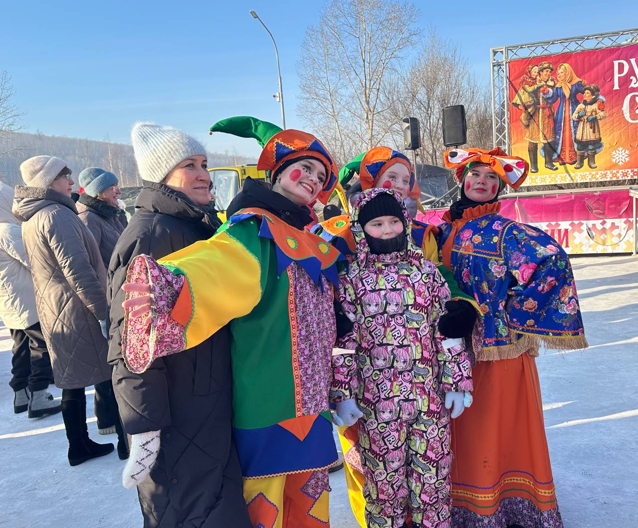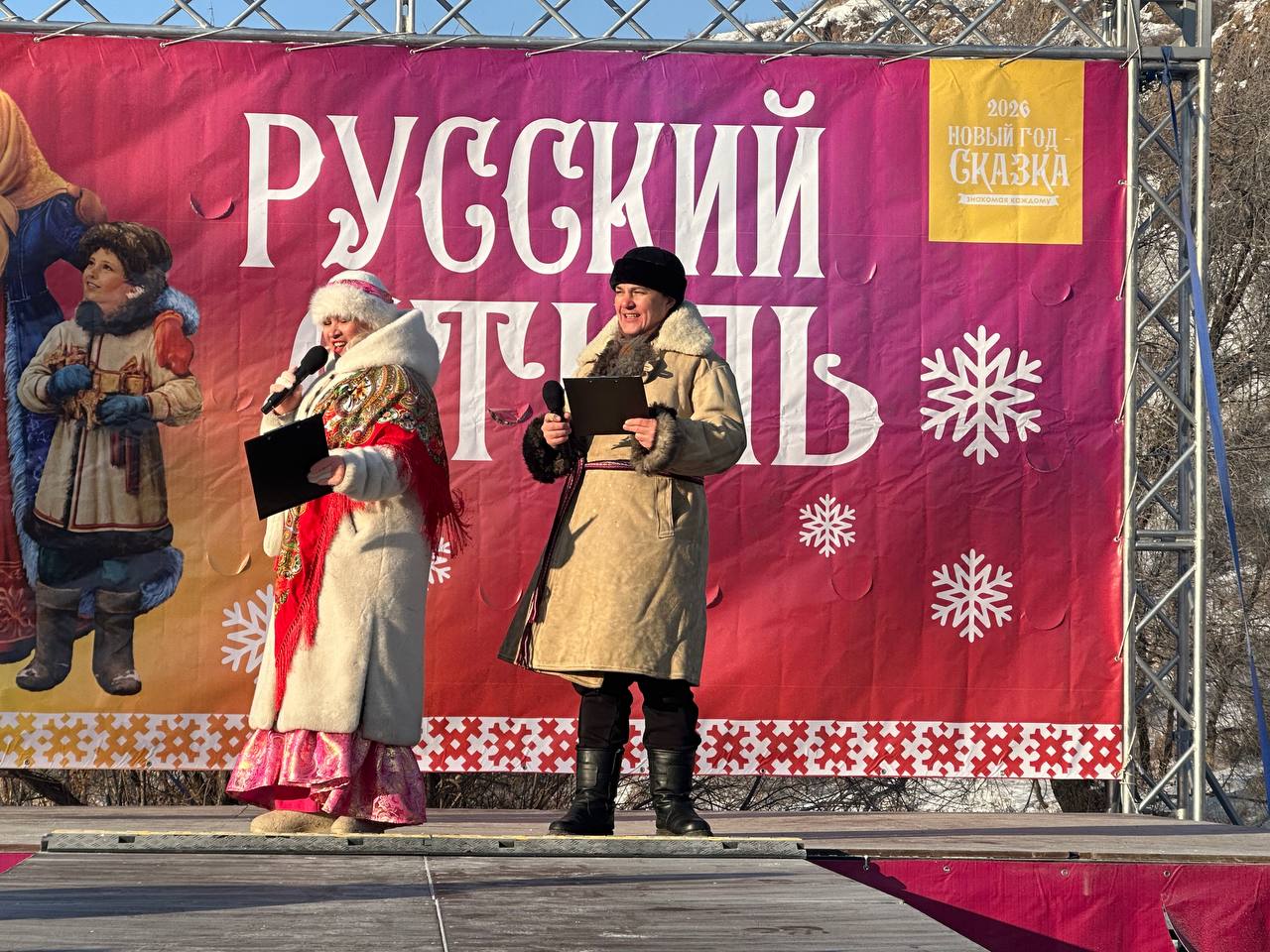 Сегодня гости поучаствуют в мастер-классах, сыграют в кёрлинг и хоккей на валенках на реке, куда их проводят весёлые скоморохи, а в 15.00 пройдутся по подиуму в нарядных костюмах.