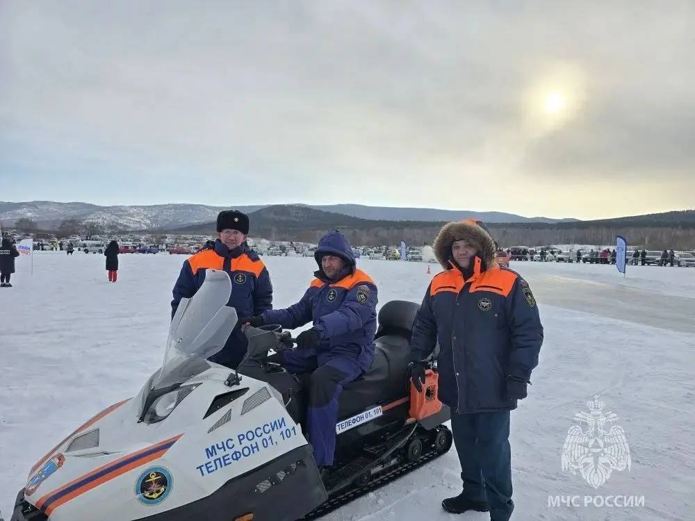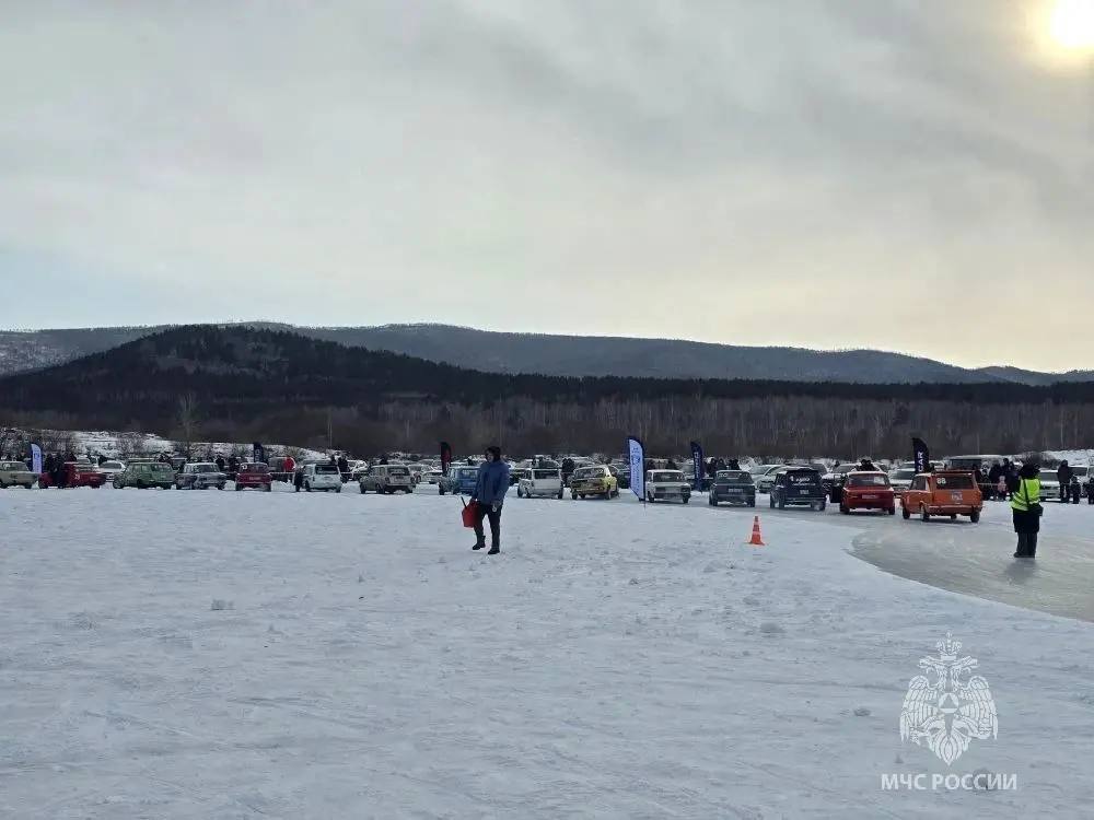 Сотрудники ГИМС по Забайкальскому краю обеспечивают безопасность зрителей и участников на льду на первенстве по дрифту