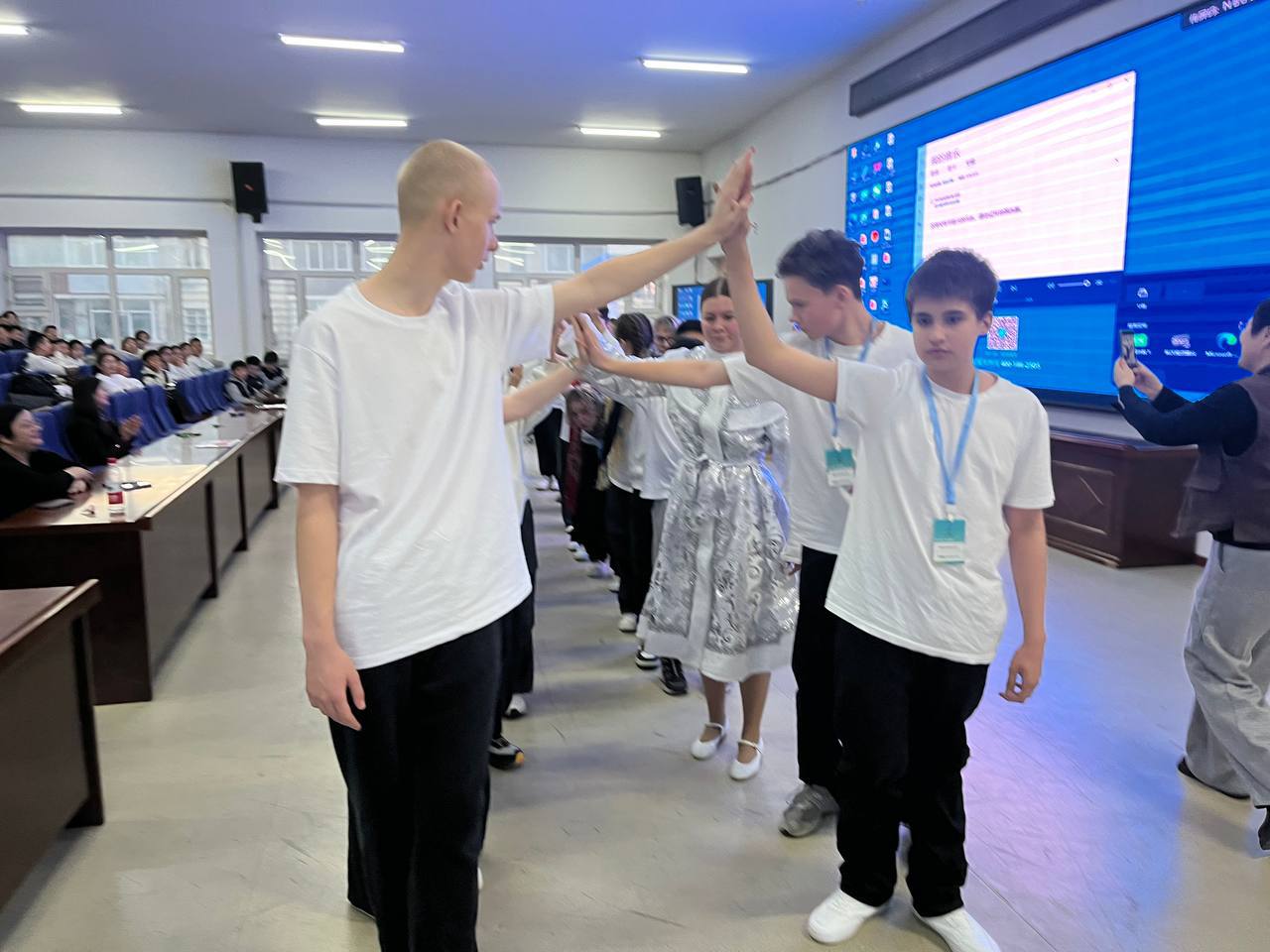 Школьникам Харбинской школы рассказали как делать ёлочку и как играть в «Ручеёк», а Снегурочки провели мастер-класс по русским народным танцам. Школьники из другой страны также организовали уроки народного танца и представили свои национальные игры.