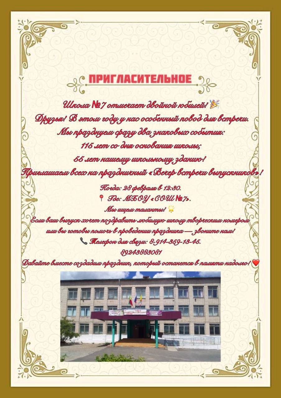 МБОУ «СОШ N 7» приглашает всех на праздничный «Вечер встречи выпускников».