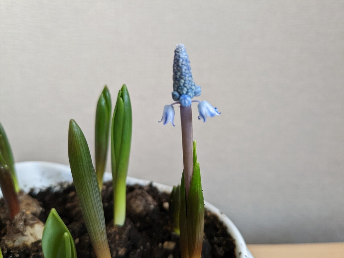 Несмотря на свою известность, мускари не подходят для ранней выгонки: даже самый ранний сорт голубого мускари зацвел позже других, совпав с цветением тюльпанов. Документы о процессе роста показывают, как изменяются мускари от посадки до момента цветения за три месяца.