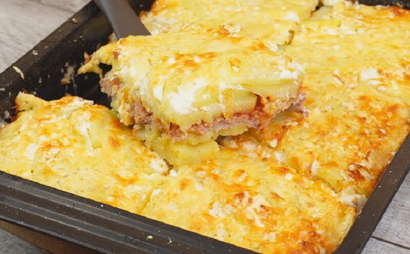Для запекания используйте форму, смазанную маслом. Начните с слоя картофеля, затем добавьте мясную начинку, снова выложите картофель и закройте форму фольгой. Запекайте в духовке при температуре 180 °C в течение 45 минут. По истечении этого времени снимите фольгу, посыпьте запеканку тертым сыром и верните в духовку еще на 15-20 минут для золотистой корочки.