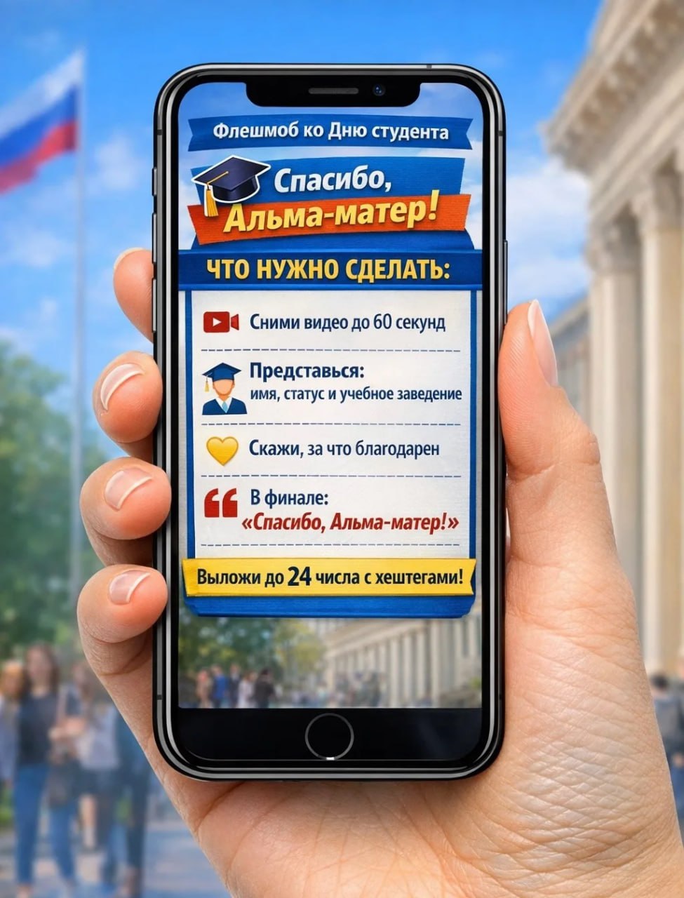 Видео необходимо выложить на своей странице ВКонтакте до 24 января включительно. Обязательно нужно отметить Министерство науки и профессионального образования Забайкалья и поставить хештеги: #СпасибоАльмаматер #ДеньСтудента2026 #ТатьянинДень #МойВуз / #МоёСПО