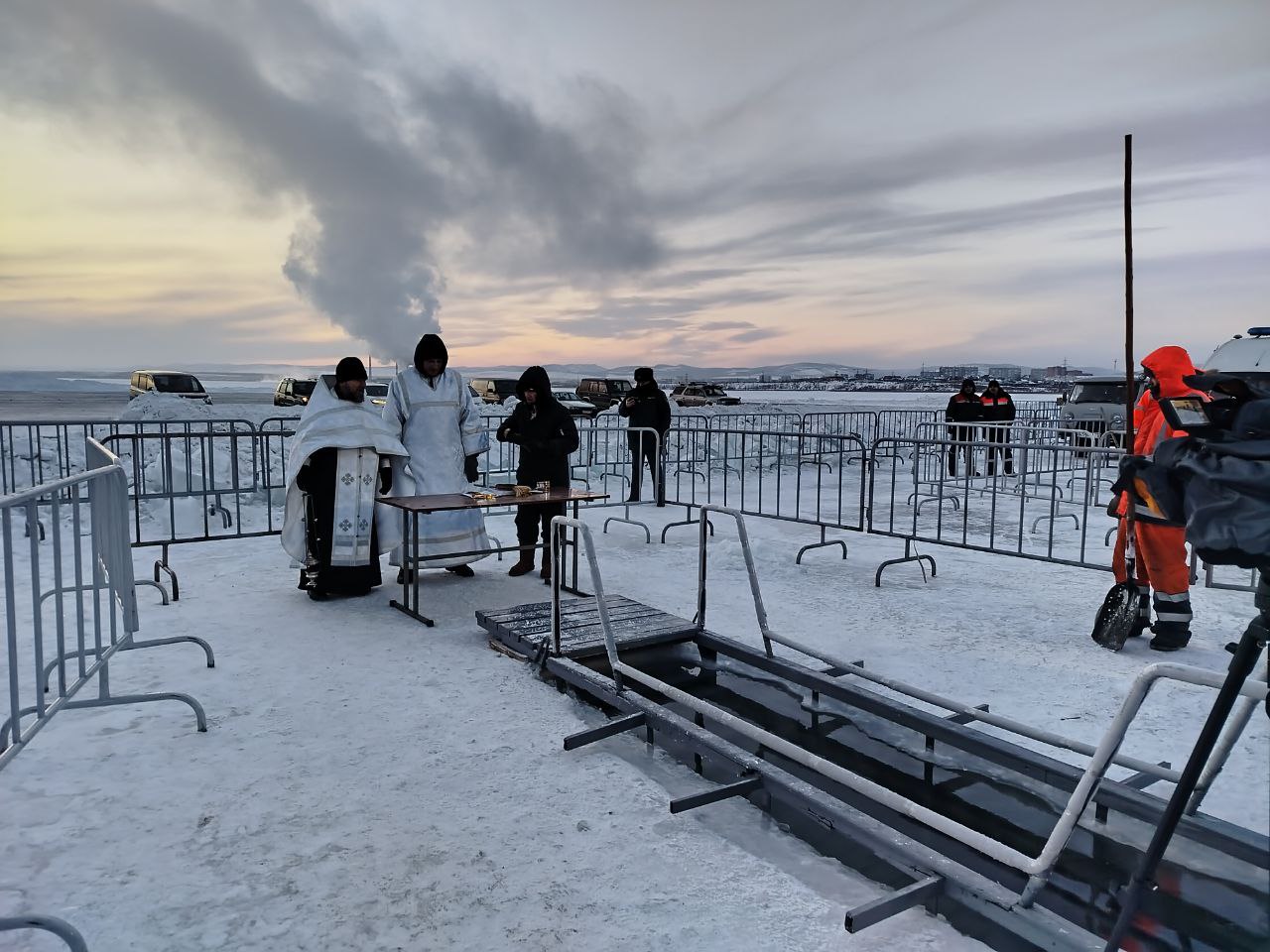 В районе проруби достаточно оживленно — читинцы готовы поддержать традицию и окунуться в воду в честь Крещения.