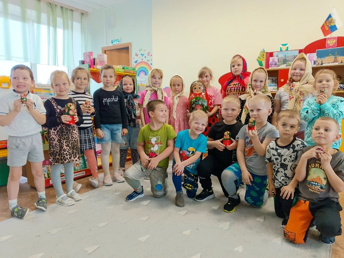 Сегодня в Узловском детском саду прошли яркие и увлекательные фольклорные посиделки, посвященные одному из самых любимых символов России — матрешке. Сотрудники библиотеки №3 подготовили для юных участников насыщенную программу, которая объединяла обучение и развлечение.