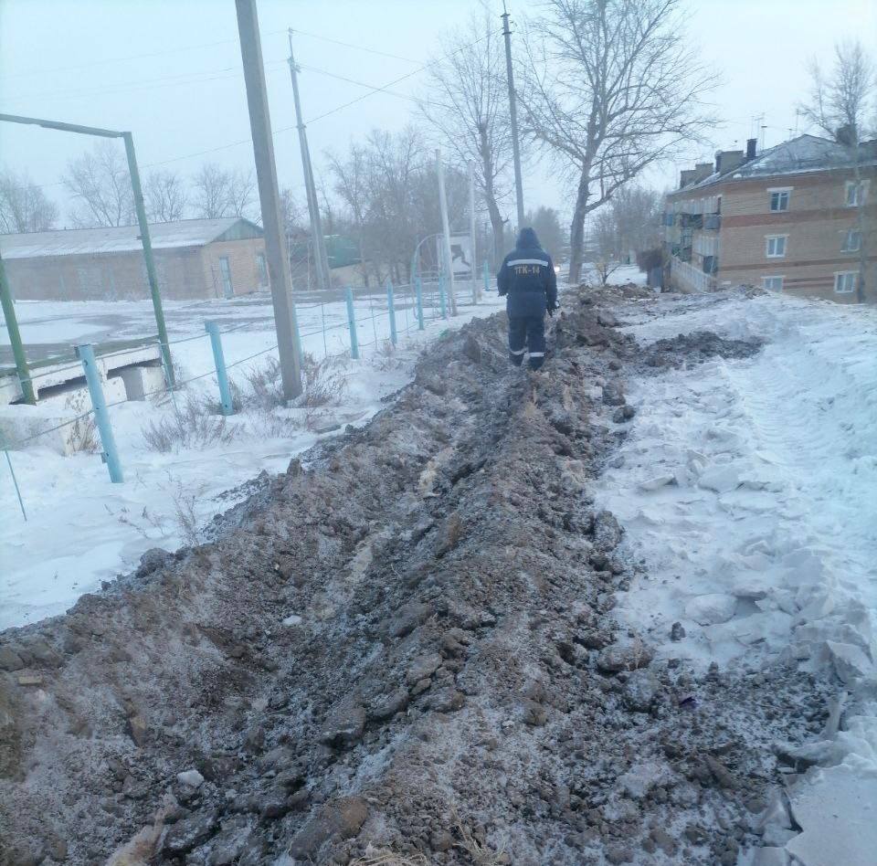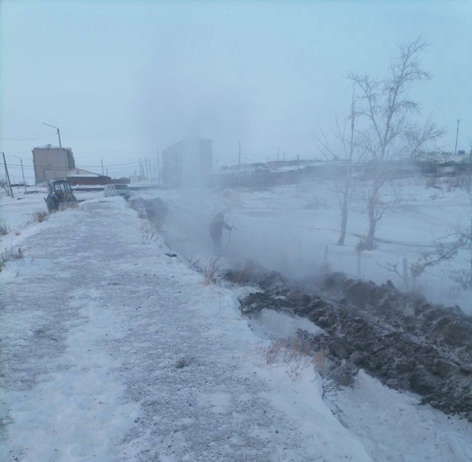 Идут работы по восстановлению участка сети холодного водоснабжения. На месте работают четыре единицы техники и две аварийно-восстановительные бригады Шерловогорской ТЭЦ.