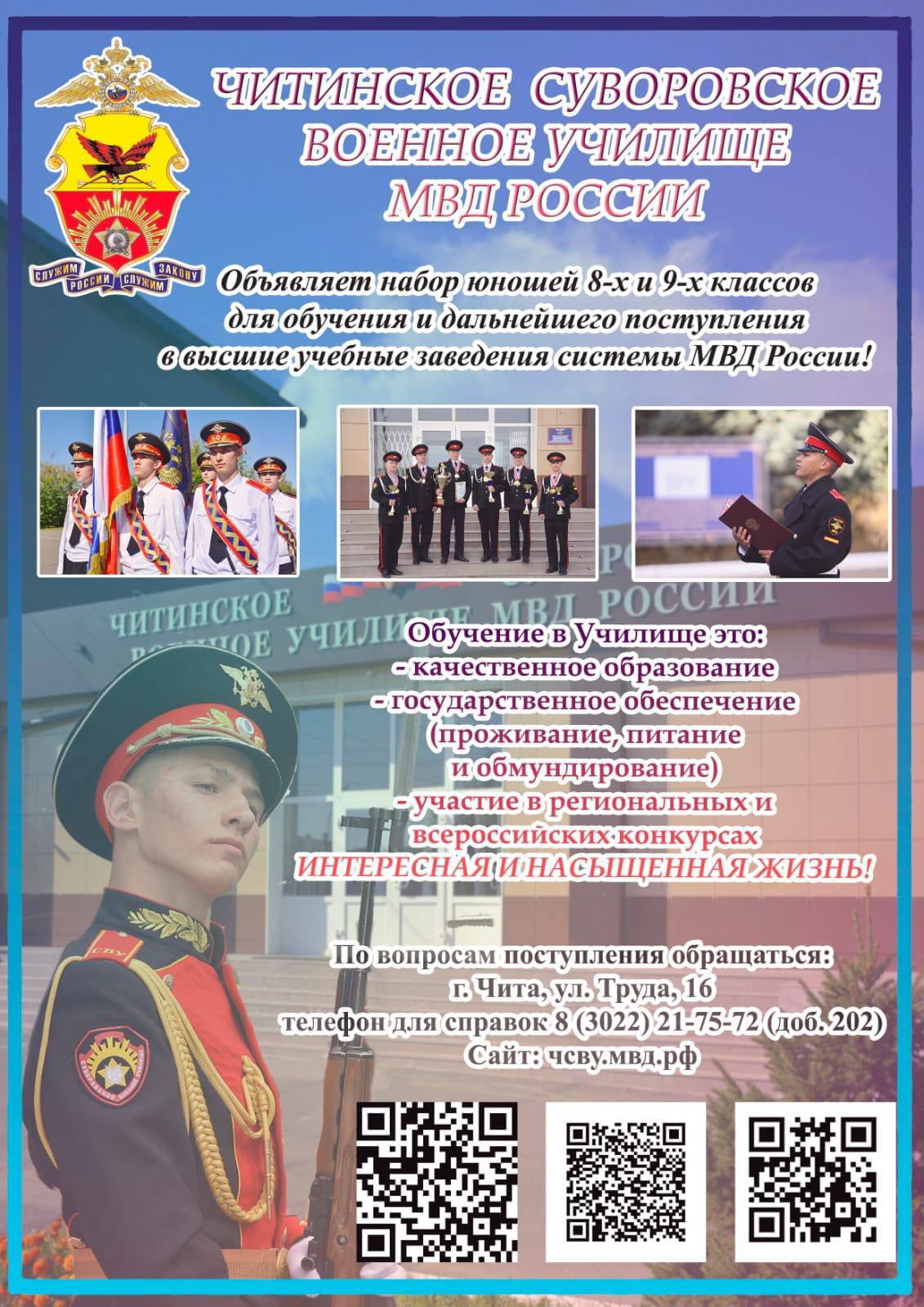 В субботу 24 января 2026 года в 11.00 приглашаем на День открытых дверей в Читинское суворовское военное училище МВД России!