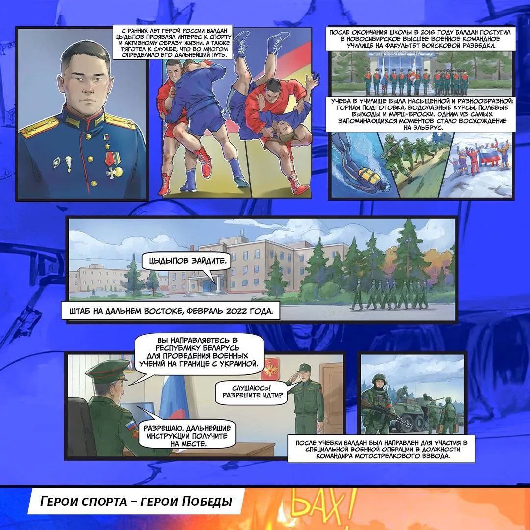 «Сегодня мы делимся историей Балдана Цыдыпова, чья жизнь — яркий пример того, как спорт формирует не только тело, но и несгибаемый дух. Его путь начался с армейского рукопашного боя, который закалил характер и научил действовать в любой ситуации. Эти качества помогли ему на фронте, где Балдан спасал жизни товарищей и проявлял невероятное мужество», - сообщает Минспорта России.