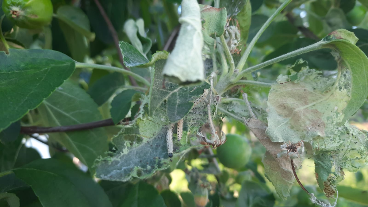 - Плодожорка готовит новое поколение и откладывает яйца на листья.