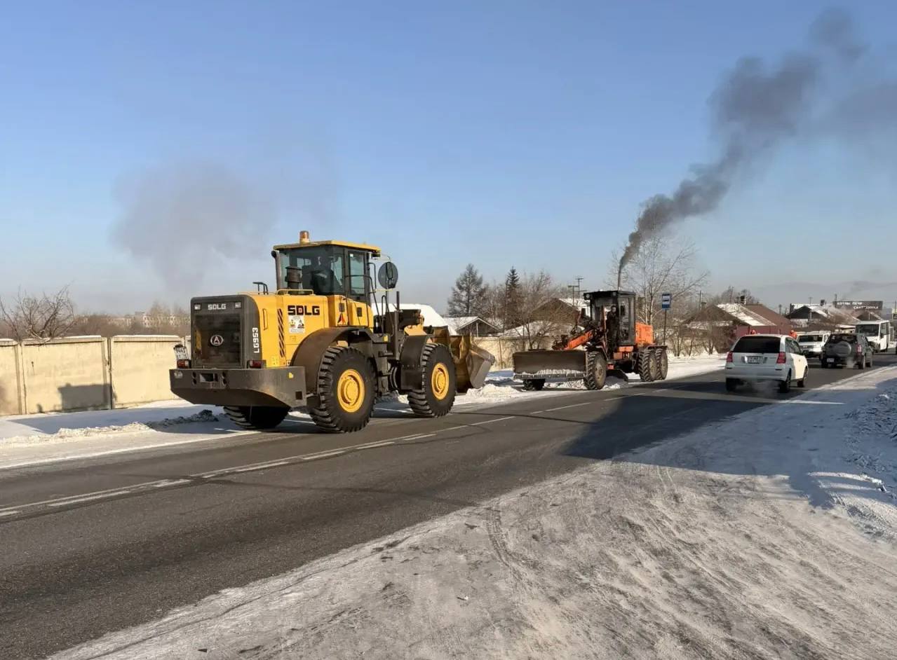 Очистка проезжей части автогрейдером