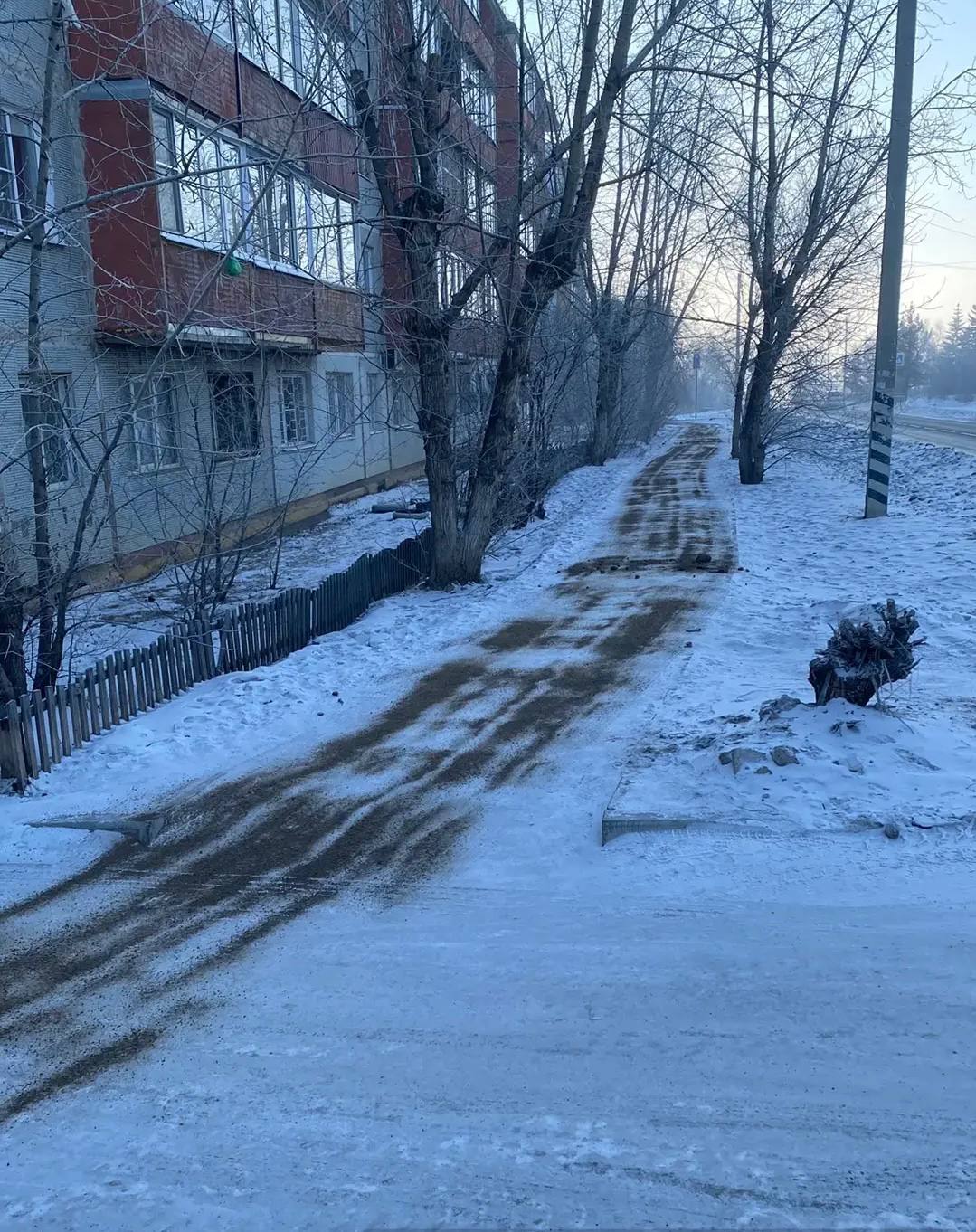 Обработка тротуаров противогололёдным материалом