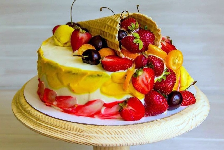 Когда корж остынет, его необходимо разрезать на 4-6 частей. В это время подготовим крем: взбиваем сметану, сливки и сахарную пудру до образования устойчивых пиков. Каждую пластину коржа щедро смазываем кремом, не забывая покрыть верх и боковые стороны торта. Для украшения можно использовать дроблёные орехи или свежие фрукты — и вот ваше сладкое произведение готово к подаче на стол!