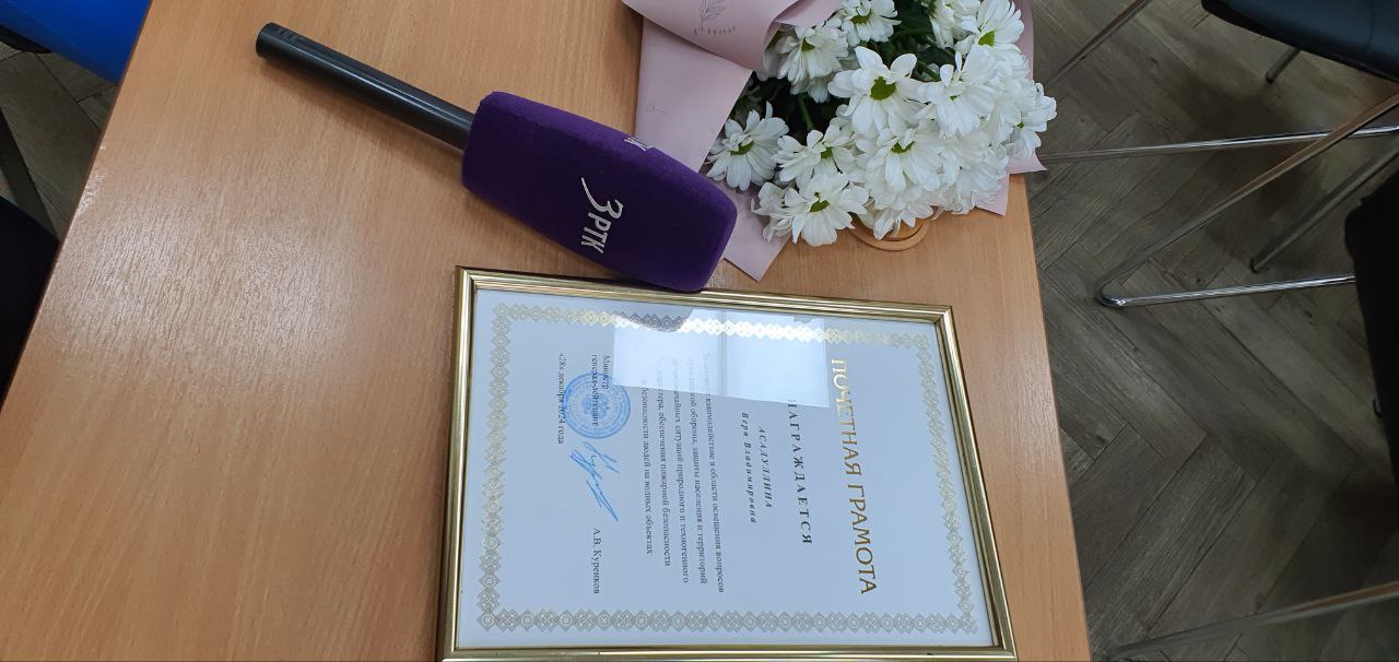 Награждение состоялось в правительстве региона. Веру отметили за активное взаимодействие в области освещения вопросов гражданской обороны, защиты населения и территорий от ЧС природного и техногенного характера, обеспечения пожарной безопасности и безопасности людей на водных объектах.