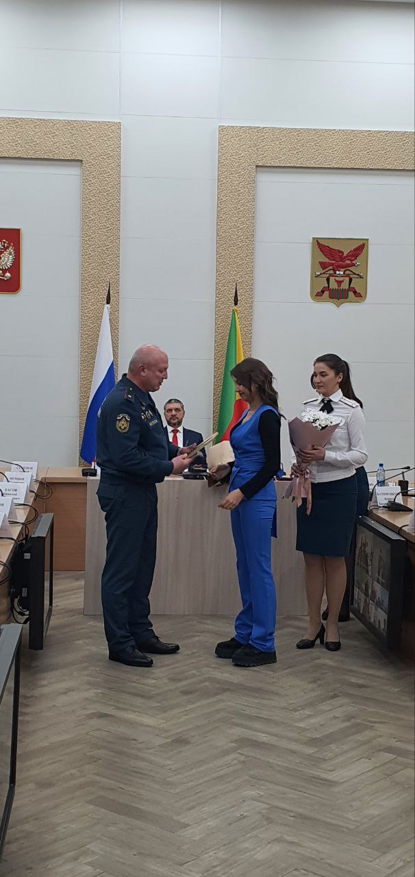 Ее удостоили почетной грамоты от министра по делам гражданской обороны, чрезвычайным ситуациям и ликвидации последствий стихийных бедствий России Александра Куренкова.
