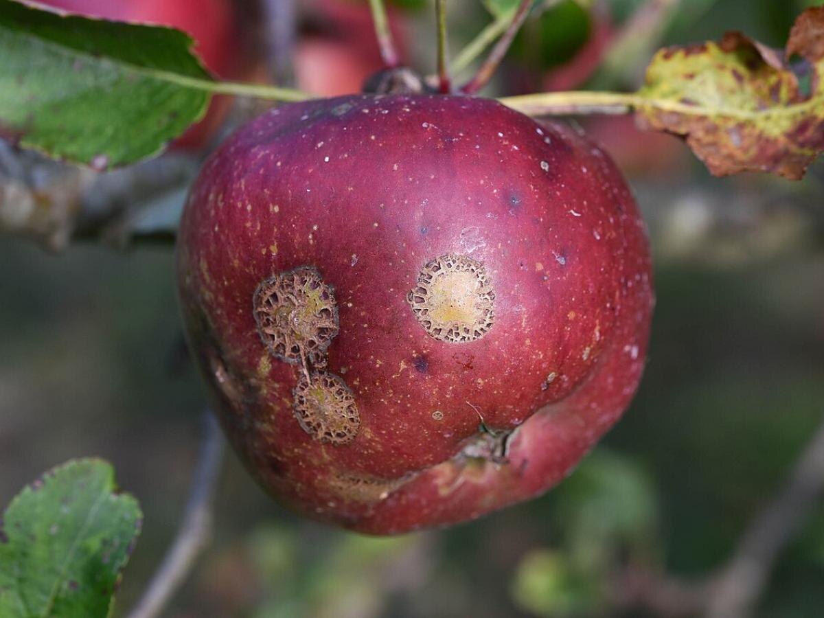 Чтобы бороться с паршей, используют комплексный подход: обработка всего дерева и грамотная профилактика на уровне кроны и ствола. Осенью полезно устранять место зимовки спор — опавшие листья и трещины коры становятся местом убежища для грибка.