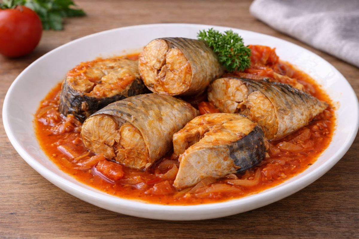Скумбрия в томатном соусе держится на идее простоты: продукты доступны, техника минимальна, а вкус — насыщенный и домашний. Томатная основа смягчает рыбу и создаёт уют, который хорошо идёт к картофельному пюре, рису или свежему хлебу.