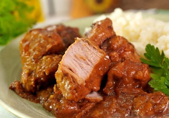 После добавления чеснока и легкого соединения муки блюдо продолжает готовиться еще пару минут, чтобы загустел соус и приобрел бархатистость. Готовность определяют по мягкости мяса и густоте соуса. Подача выбирается по настроению: к рису, к кнедликам или к тушёной капусте — уютно вписывается в богемский стол.