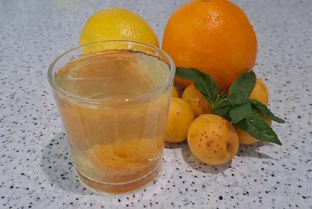 Собрать все необходимые ингредиенты.Тщательно вымыть и простерилизовать трехлитровые банки. Для этого необходимо вскипятить около 2,5 литров воды на каждую банку.Под проточной водой промыть абрикосы, затем удалить из них косточки.Выложить подготовленные абрикосы на дно стерилизованной банки.Добавить 200 граммов сахара.Нарезать лимон и апельсин дольками и разместить в банке.Добавить мяту, а затем аккуратно залить содержимое банки кипящей водой до самого верха.Закатать банку жестяной крышкой и перевернуть ее, чтобы убедиться в надежной герметичности.Укутать банку в полотенце или одеяло и оставить на 24 часа, чтобы она отошла и остыла. Хранить компот лучше в прохладном месте.Попробуйте этот рецептик и насладитесь летним вкусом в любое время года!