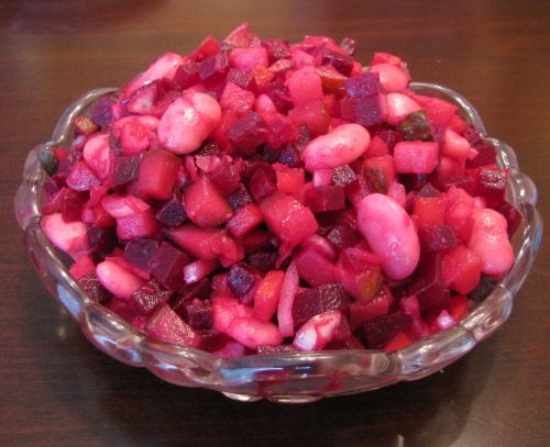 Главная изюминка этого винегрета – добавление отварной фасоли, которое кардинально меняет вкус привычного блюда. Этот интересный ингредиент придаёт салату оригинальность и сытность. Попробуйте самостоятельно оценить уникальность такого сочетания!