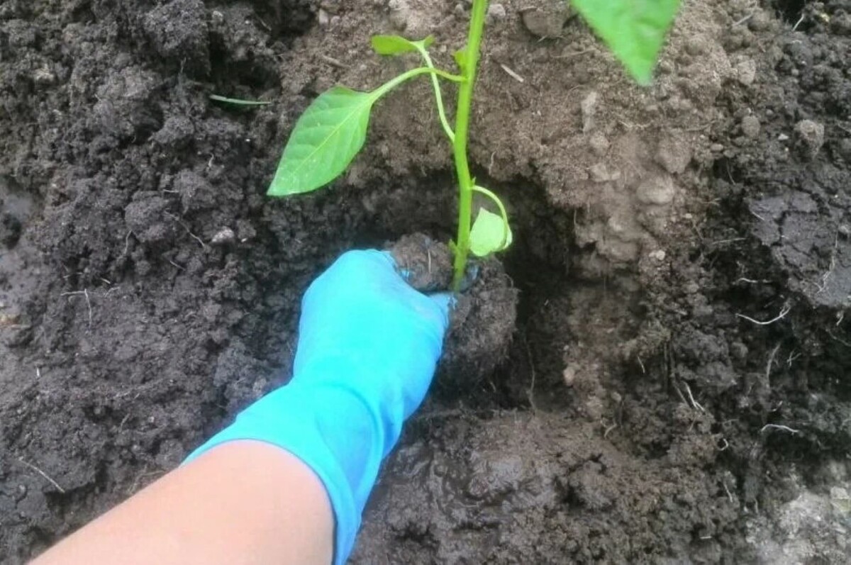 Рекомендуется сажать рассаду на уровне, на котором она росла в емкости. Можно заглубить стебель не более чем на 0,5 см — это позволит образоваться придаточным корням и обеспечит более активный рост перца.