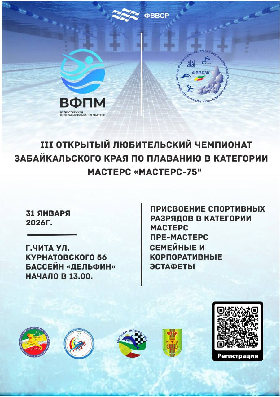 31 января в бассейне «Дельфин» пройдет долгожданное событие для всех любителей водных видов спорта — III открытый любительский чемпионат Забайкальского края по плаванию мастер «мастерс-75».